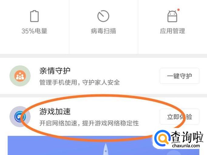 进入安全中心后会看到“游戏加速”选项,点击进入
