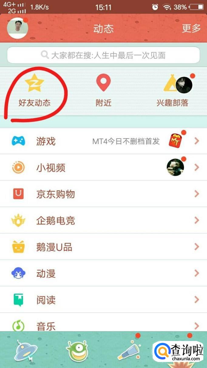 接着,点击“好友动态”,进入到好友动态的相关页面。