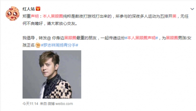 2020年4月23日周扬青微博发长文宣布已于罗志祥分手,并列举了对方的种种渣男行为,包括两人未分手时罗志祥就长期出轨,甚至会约上众多朋友一起半夜“运动”。于是网友们将罗志祥的黑眼圈与半夜“运动”熬夜联系了起来,成为了鉴别渣男的新方式。很多黑眼圈重的网友躺枪,发布黑眼圈声明,力证自己的黑眼圈并非罗志祥同款。