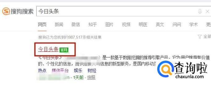 如下图所示,点击今日头条官网。