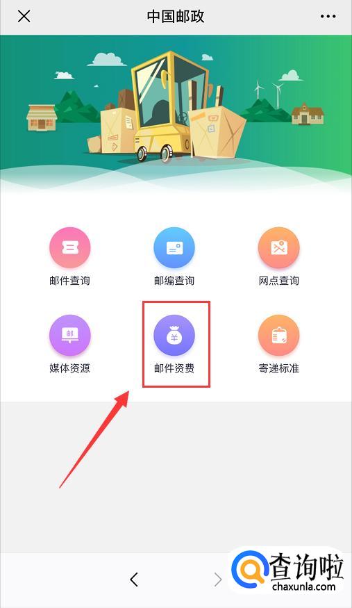 等待网页跳转后,在出现的查询功能中选择【邮件资费】;