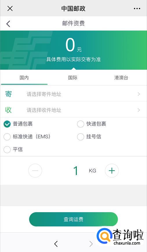 进入之后,输入你想知道查询的邮件方式、邮件地址以及类型等信息,点击下方的【查询资费】等待页面跳转即可。