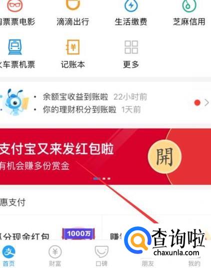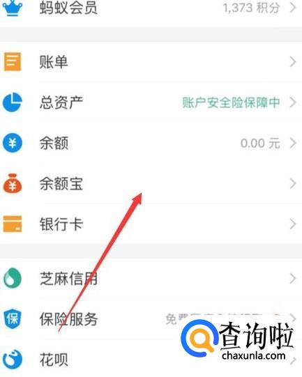 然后找到余额宝,然后进入,没有开通的要开通。