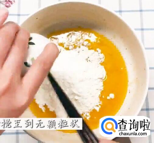 黄油还留在锅内,倒入面粉,搅拌至无颗粒状。