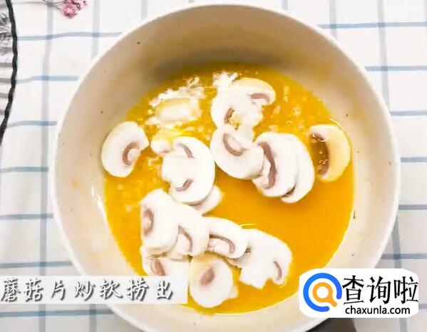 倒入蘑菇片,炒软后捞出。