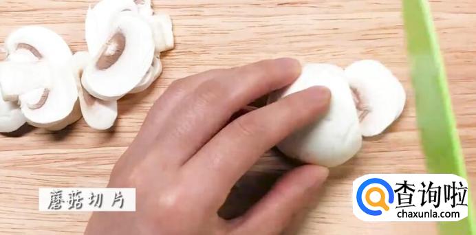 蘑菇切成片。