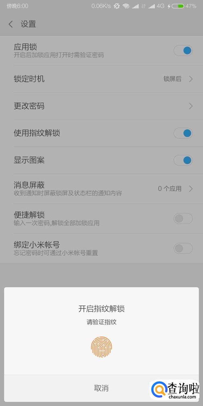 以后进入到已被添加到应用锁里面的应用都需要指纹解锁才能进入。