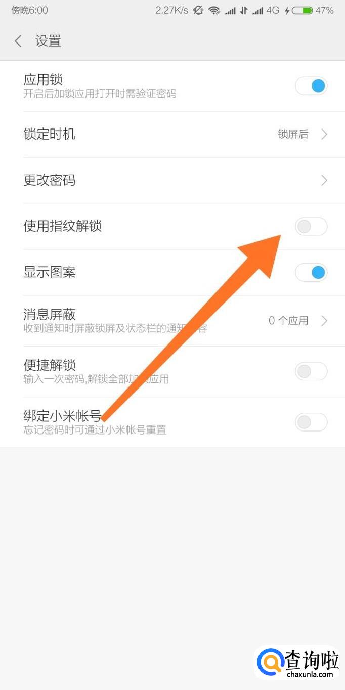 最后我们打开“使用指纹解锁”设置选项即可。