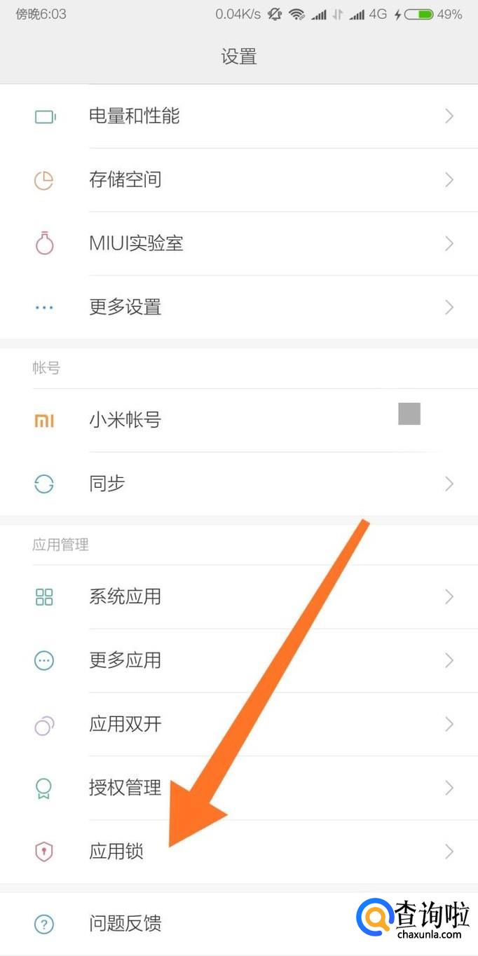 然后在设置里面找到“应用锁”,点击进入。