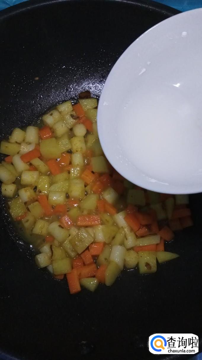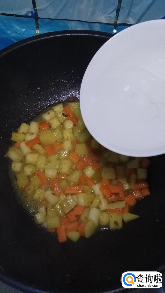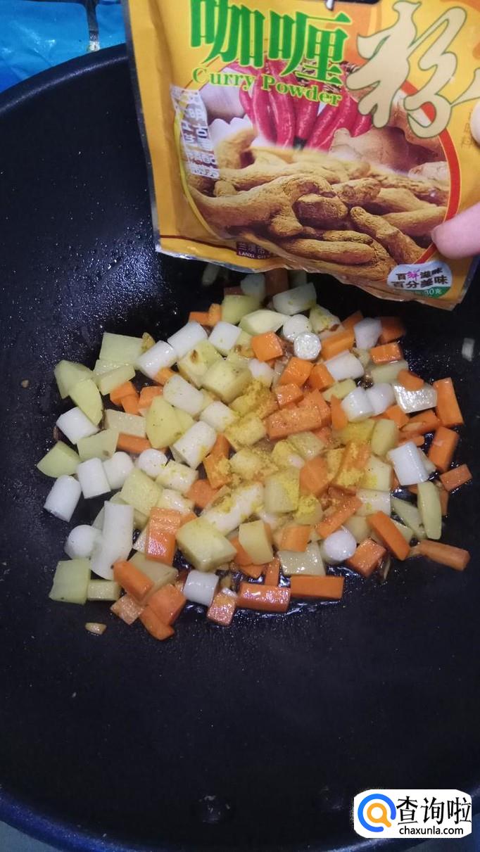 放入适量咖喱粉,再加少许清水,大火将水煮开,