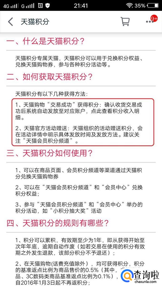首先,我说明一下,当前版本的手机天猫取消了签到领积分项目,天猫积分的来源主要有两种:购物和官方活动赠送。下图是官方提供的最新的天猫积分规则。