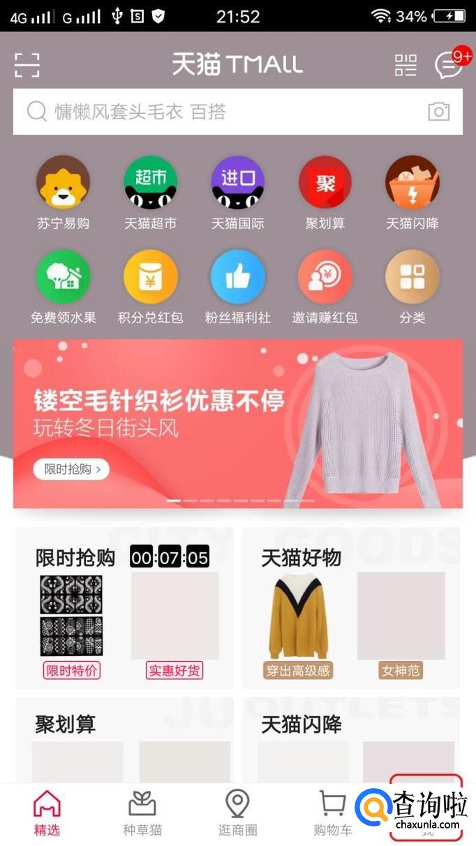查看积分只需要打开手机上的天猫app,然后点击首页右下角的“我”。