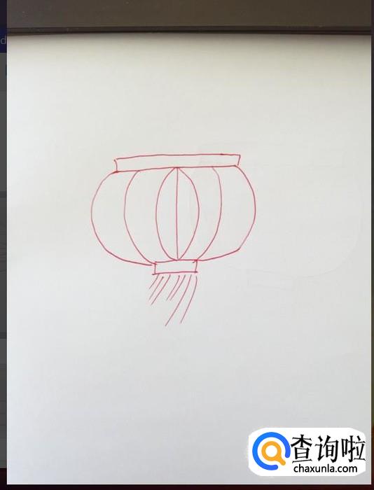 在下方扁平长方形的下面画上灯笼的絮。(注意:灯笼的絮长短可以不一,但方向要一致。)