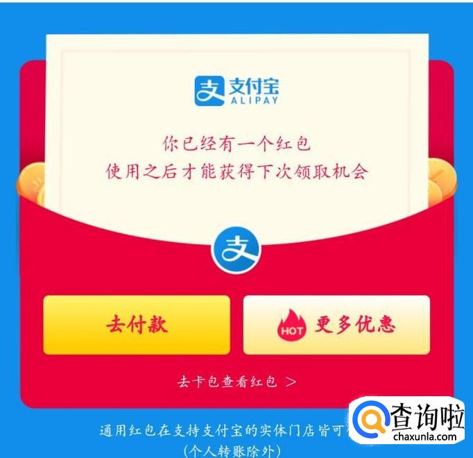 在支付宝首页中,你可以看到卡包,点击进去,就可以查看你领取的红包了,还会通知你多久过期。