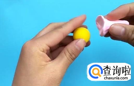 用超轻黏土分别捏出一个小圆球和一个小帽子。超清黏土的颜色可以根据自己的喜好进行搭配。