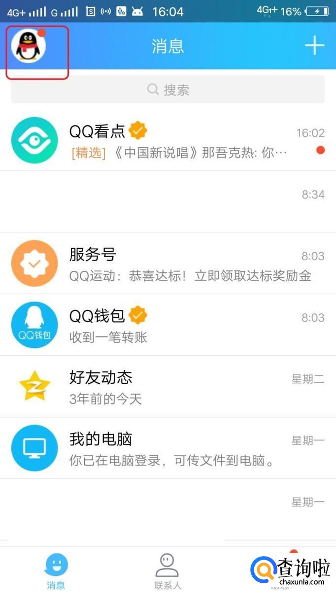 首先,我们打开手机QQ,登录自己的账号,然后点击左上角的头像。