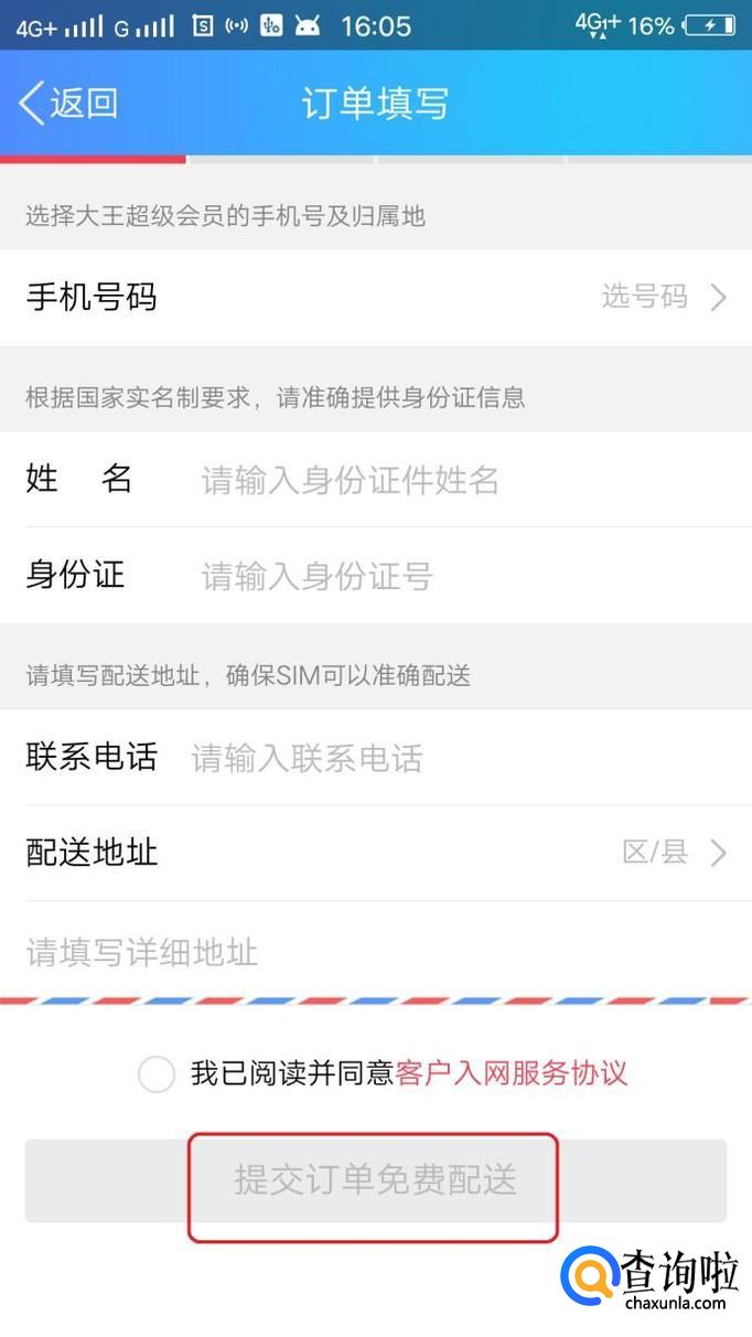 如图所示,只要输入个人身份信息,然后选择手机号码(及所在地区),点击“提交订单免费配送”,等收到货激活号码就可以使用了。
