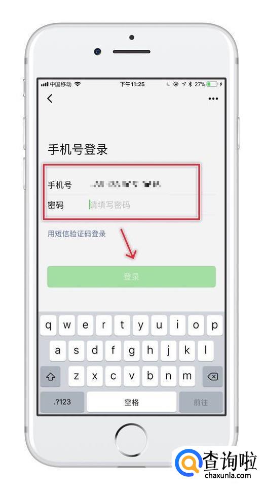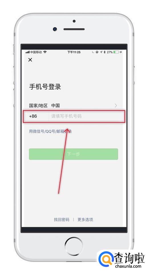 接着输入你的另一个微信所绑定的手机号,如下图所示。