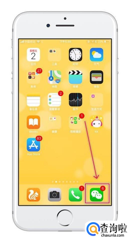 首先在我们的手机桌面上找到微信并点击它,如下图所示。