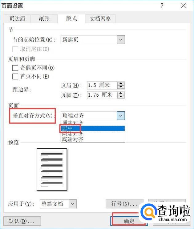 弹出的界面,我们点击垂直对齐方式边上的下拉箭头,弹出的界面,我们可以看到一共有四种,我们选择居中,之后我们点击确定;