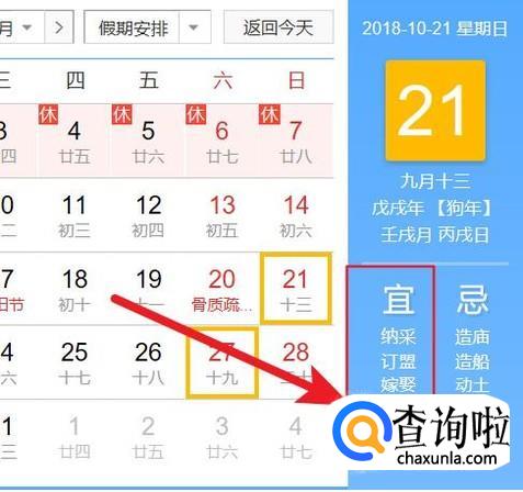 右边显示宜和忌,如图所示,如果宜嫁娶,那么这一天算是结婚的好日子。