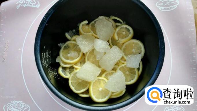 电饭锅保持无油无水的状态,放入柠檬片,再放入一层冰糖,以此类推叠加到7分满。