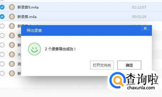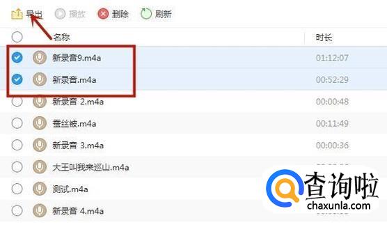 接着勾选我们要导出的录音并点击导出,如下图所示。