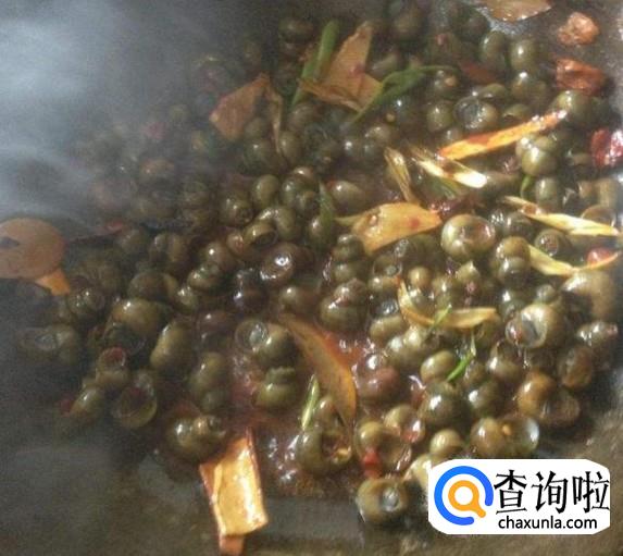 把油锅烧热,葱姜蒜爆香,然后倒入煮好的螺丝,倒入一些料酒、生抽、糖、蚝油,在出锅之前用水焖一下就可以出锅了。