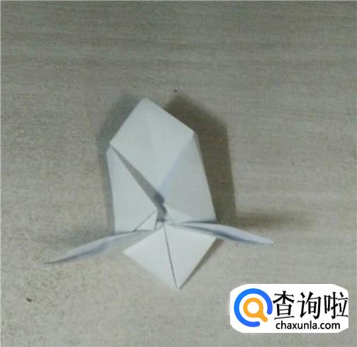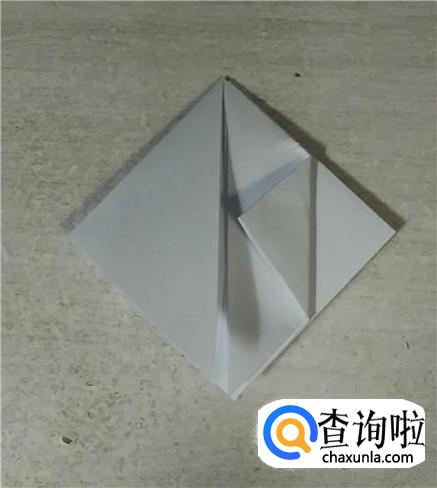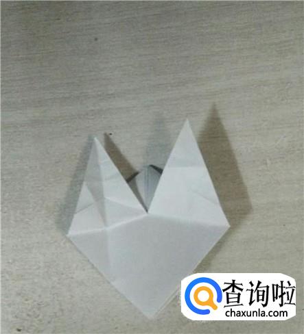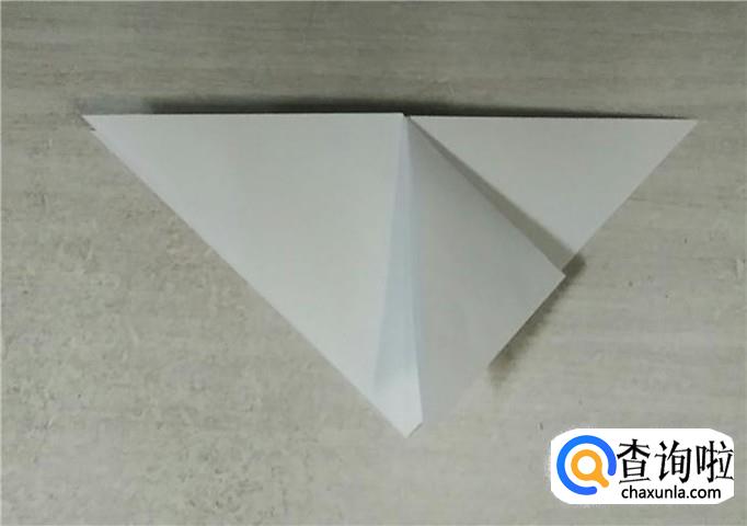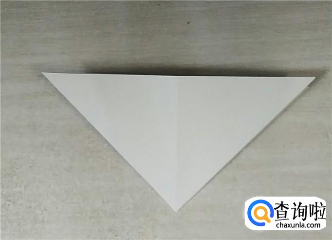 把纸翻一面,把三角形向上翻折,然后分别对折。如下图所示。
