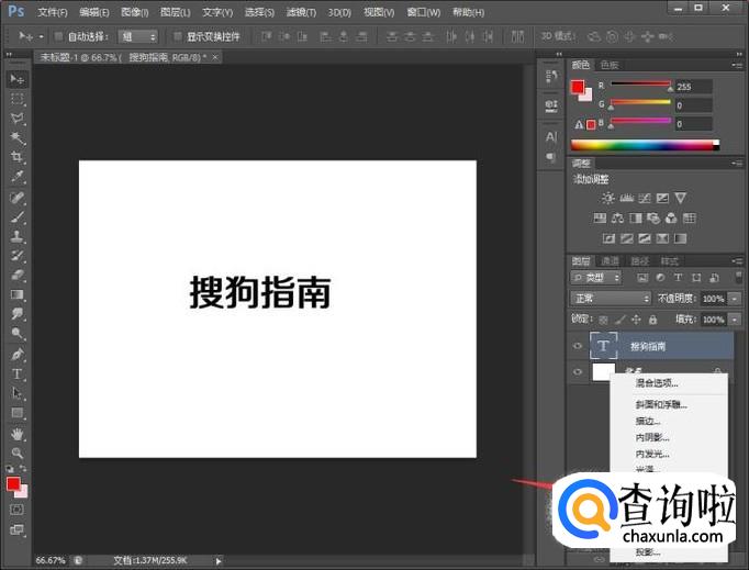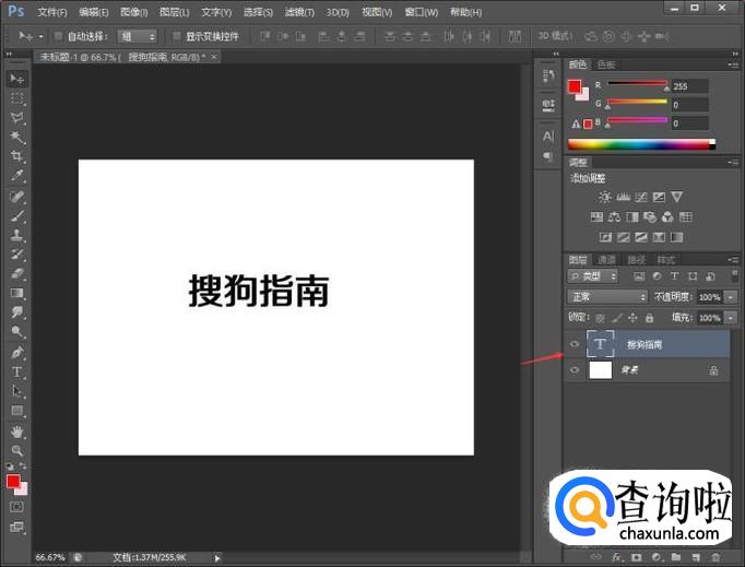 我们使用文字工具,新建一个文字图层,输入酷知网