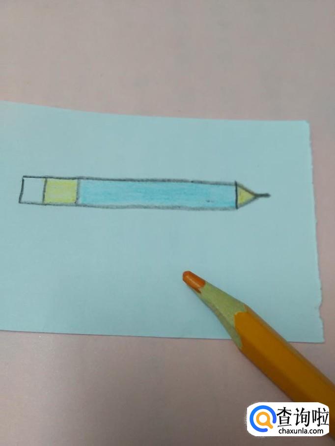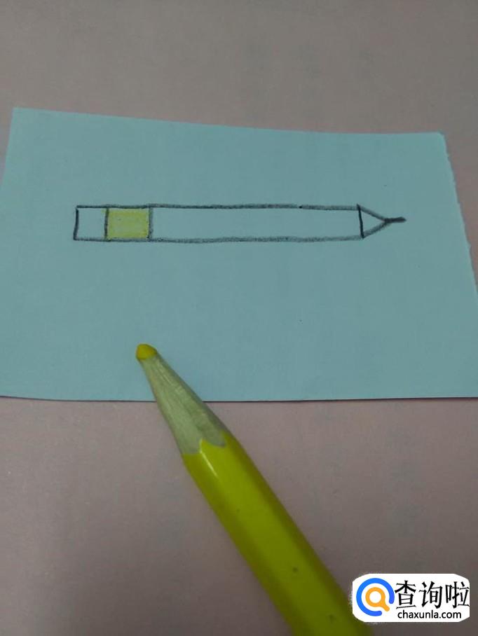 左侧的橡皮头一般是白色的,就不用涂色了,用黄色把金属箍涂上颜色。