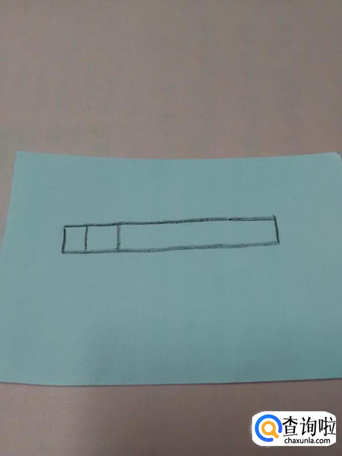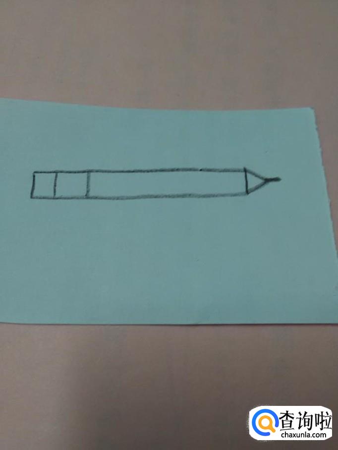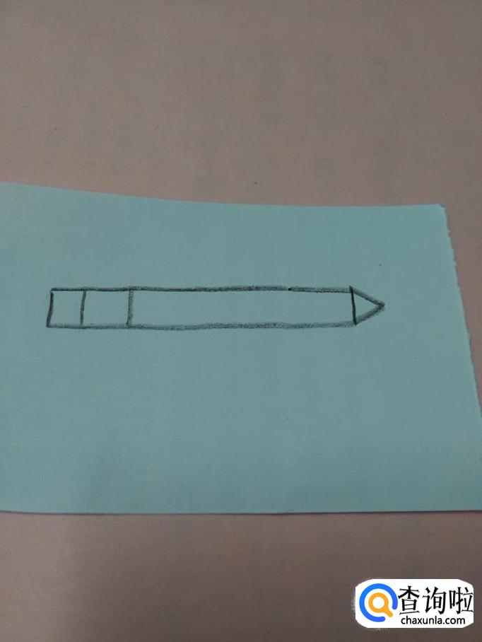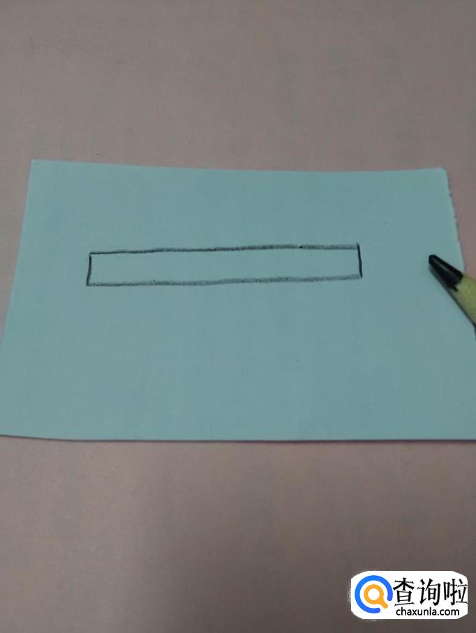 先用黑笔在纸上画一个细细的长方形,表示笔杆。