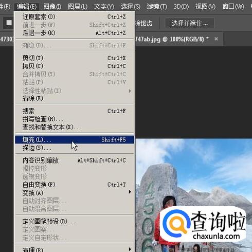 接着,鼠标再点编辑菜单,弹出下拉列表,再点:填充