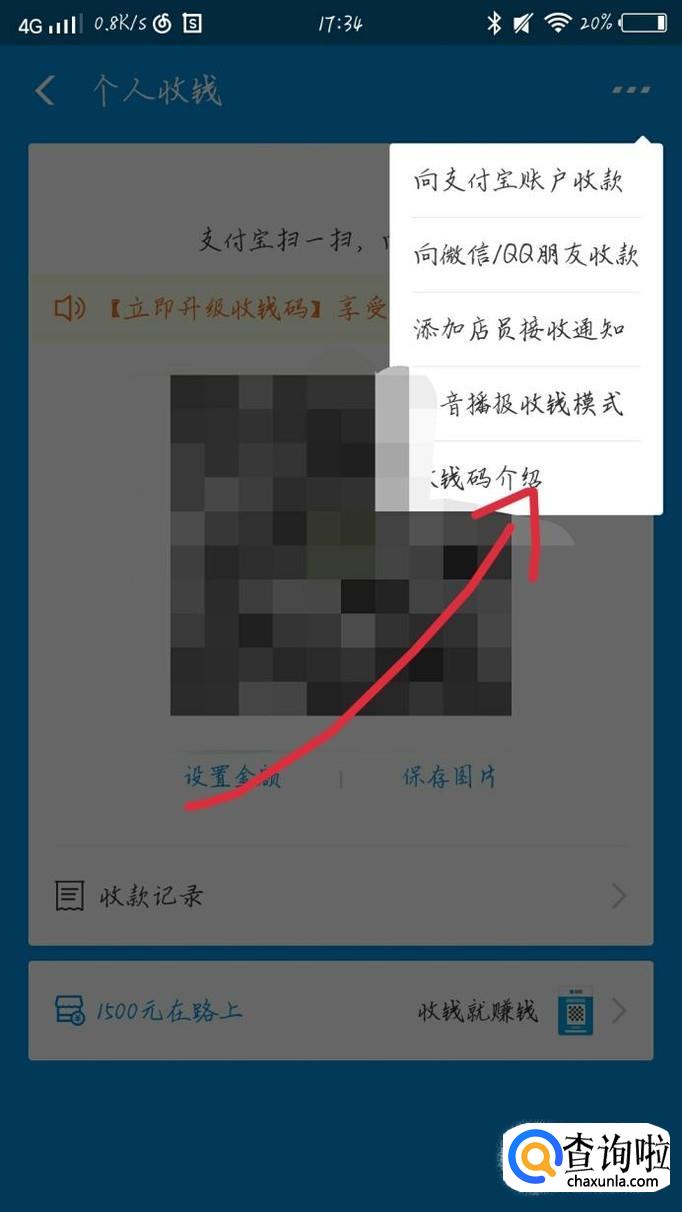 你会看到出现一个新的界面,点击“收款码介绍”选项,如图1箭头所示。你会看到出现一个新的界面,如图2所示。