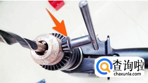 电齿圆环把钻头夹紧后,用电钻钥匙在电钻上面的钢环上的小孔处插进去,接着转动钥匙拧紧,几个孔都需要这么操作。