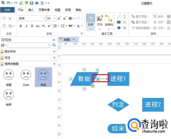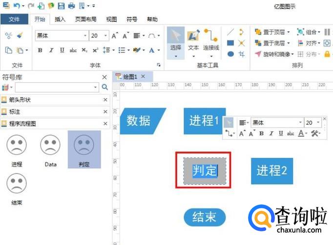 块与块之间的箭头上也是可以添加文字的,双击输入所需的内容即可,同时也有文字工具栏设置文字属性;