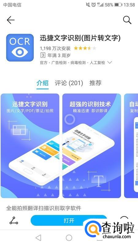 首先先在手机上下载一个【迅捷文字识别】,下载好后,打开运行它。