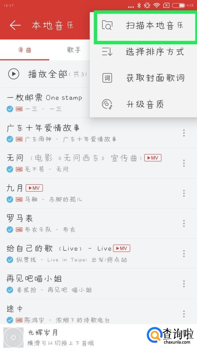 点击右上角的符号后选择"扫描本地音乐"