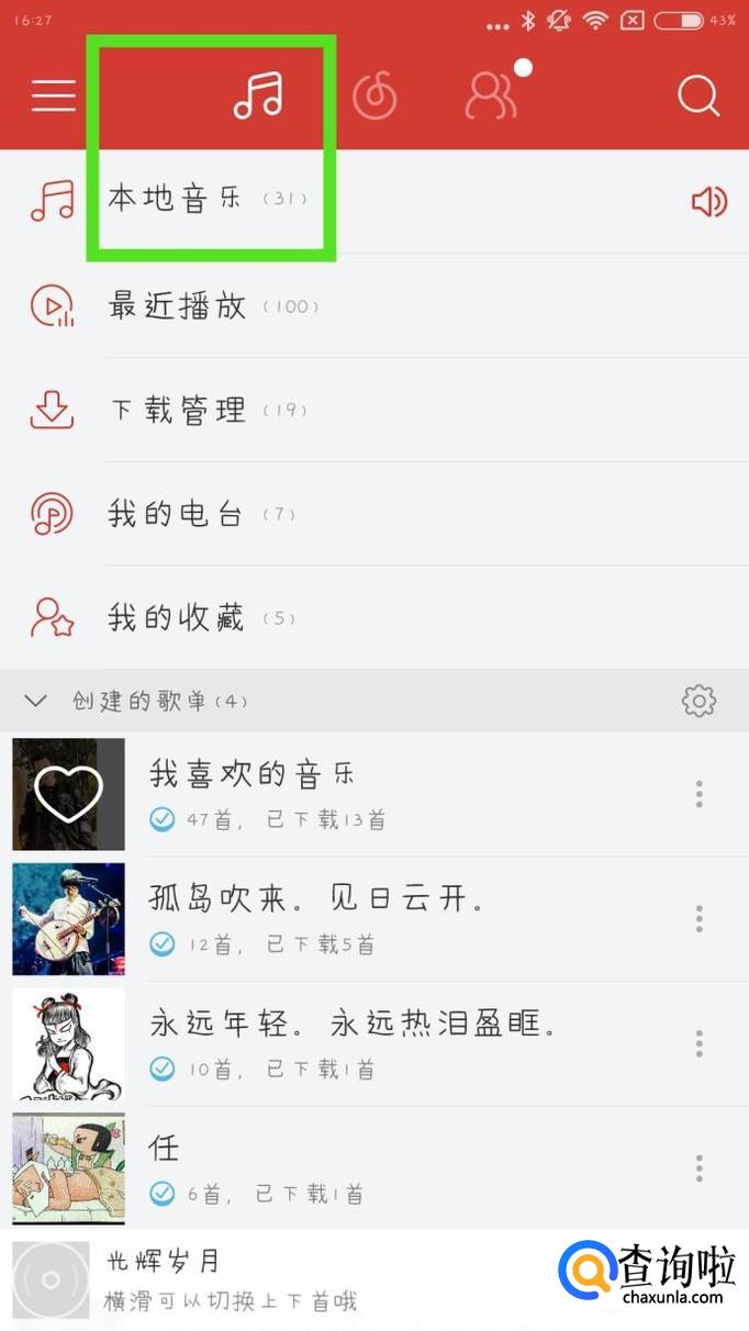 点击这个符号下的"本地音乐"。