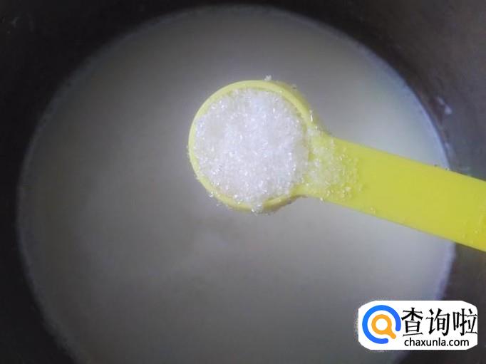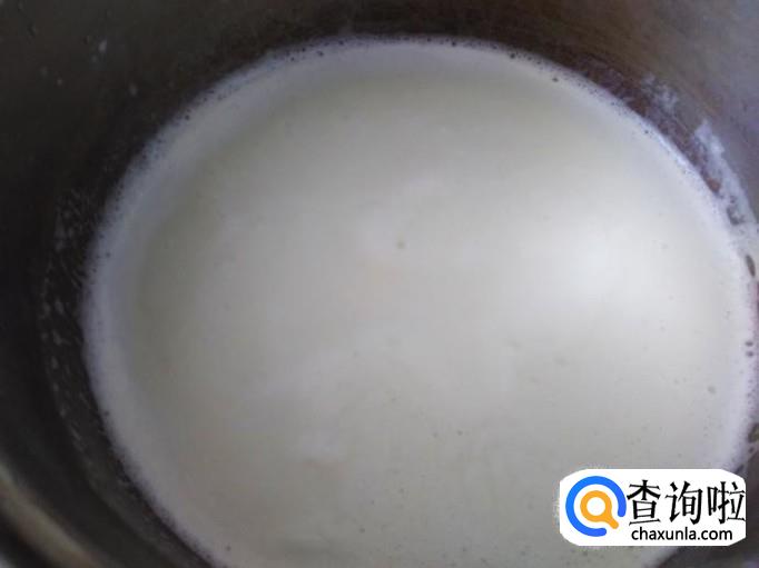鲜奶放到锅里,加适量的白糖用小火煮沸即可熄火,然后晾凉。