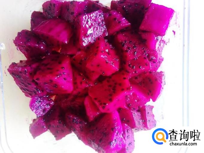 火龙果剥皮,然后切成小丁,放混合西米盒子里。