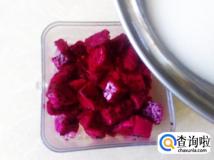 然后把晾凉了的鲜奶倒到盒子混合,放到冰箱4个小时左右再拿出来食用。【鲜奶一定要晾凉再和火龙果混合,热的鲜奶和火龙果混在一起会变成蛋花状的,牛奶和带有酸性的水果经过高温会变成蛋花状】