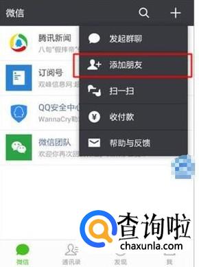 我们首先点击微信界面右上角的加号按钮,然后选择添加好友的按钮