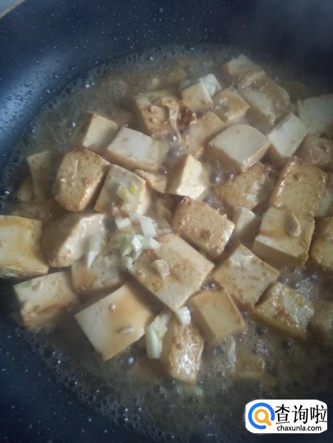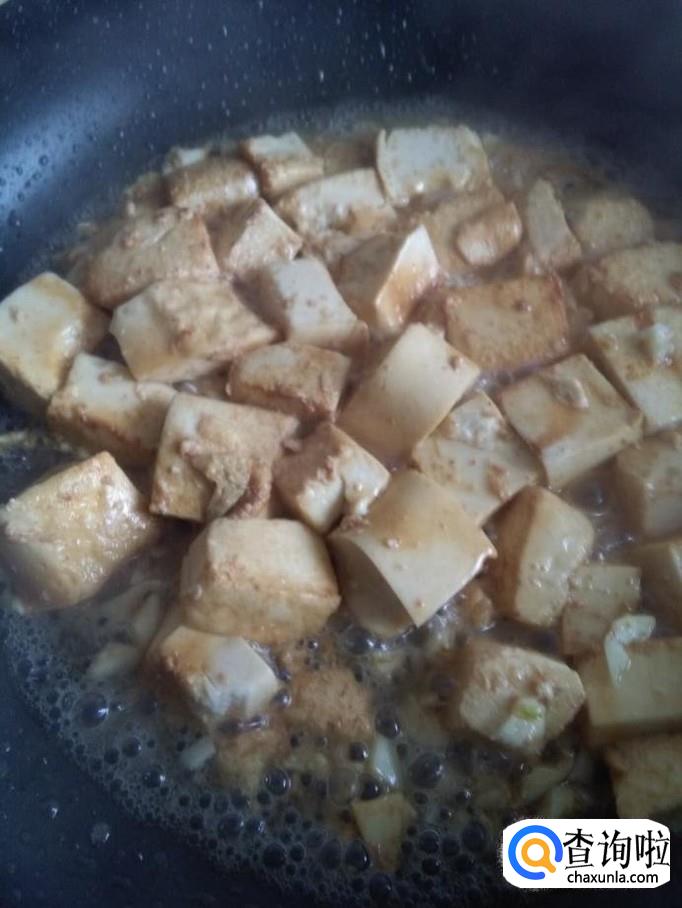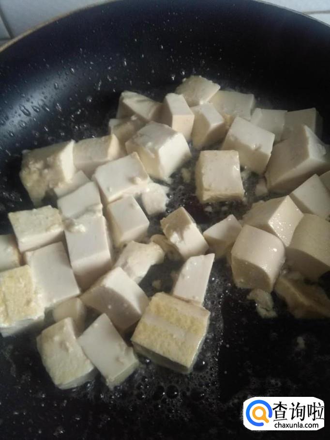锅烧热,加入适量油,油温五成热时将豆腐放入锅中,轻轻翻炒
