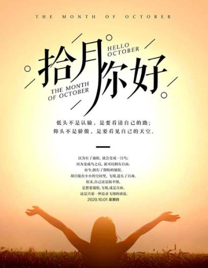 十月份的节日有:10月1日 国庆节(1949 )、国际音乐日(1980)、 国际老人节(1990)、10月9日 、世界邮政日(万国邮联日) 1969、10月16日 世界粮食日 1979、10月17日 世界消除贫困日等等。