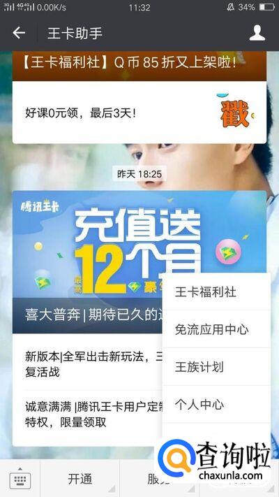 点击进入“王卡助手”公众号,然后点击右下角的“特权”就会出现多个选项哦!