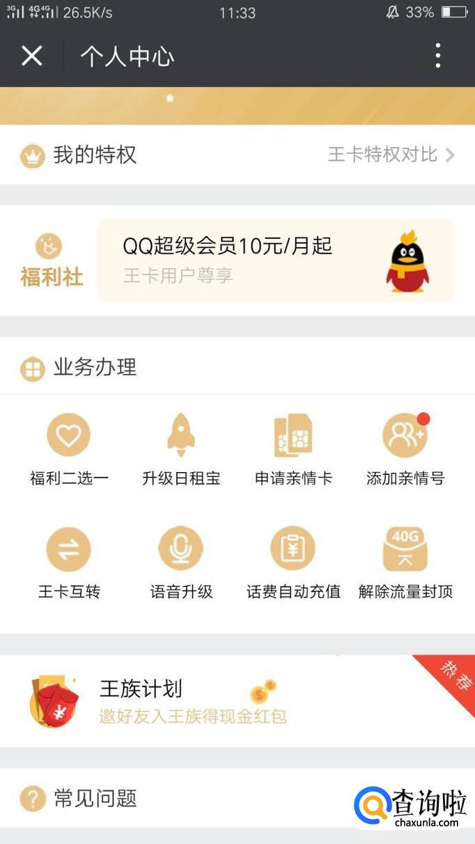 点击选项中的“个人中心”,在个人中心可以办理亲情号。