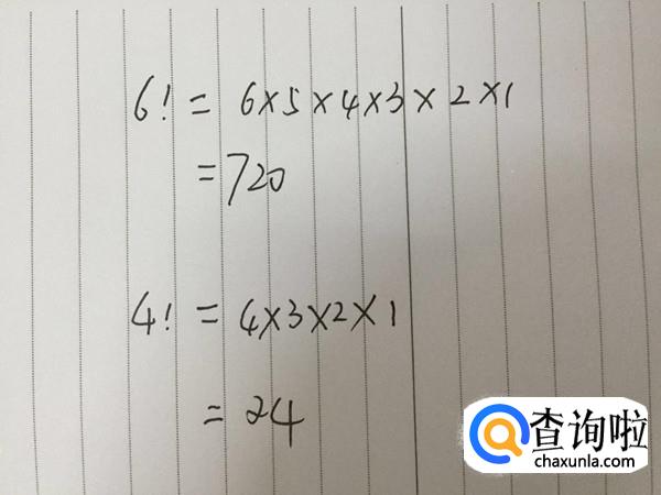 用具体的例子来理解上面的定义:6!=6x5x4x3x2x1=720,4!=4x3x2x1=24。