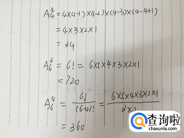 用具体的例子来理解上面的定义:4种颜色按不同颜色,进行排列,有多少种排列方法,如果是6种颜色呢。从6种颜色中取出4种进行排列呢。