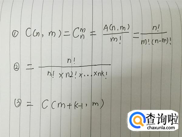 Cnm=Pnm/Pmm ;Cnm=n!/m!(n-m)!;Cnn(两个n分别为上标和下标) =1 ;Cn1(n为下标1为上标)=n;Cnm=Cnn-m